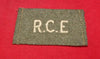This is the 1/2 size, and has letters, R.C.E., Royal Canadian Engineers, in white letters. Dull green cloth backing.
