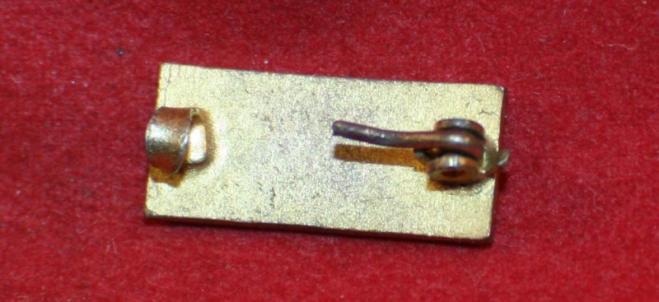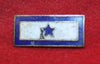 American, Single person in the Forces pin. Rectangle, 7.36mm high by 16.87mm wide, with blue and white enamel, single star, indicating single person in the Military. Some light brown staining, don't know if it can be cleaned or not, small enamel chip near star. Pin back fastener with about 3/4s of the pin missing.